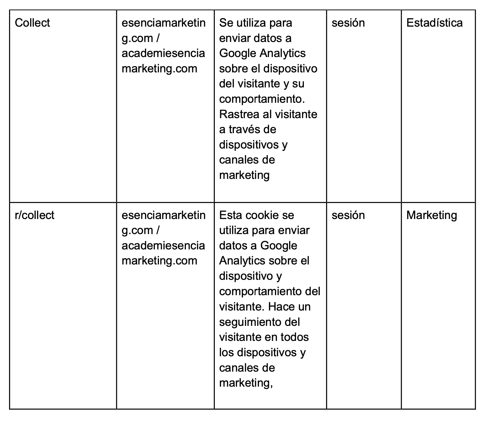 Este sitio web hace uso de las siguientes cookies: técnicas, de personalización, de análisis, de publicidad comportamental. A continuación, se detallan las cookies que utiliza este sitio web, sin embargo, debido a la imposibilidad técnica que esto puede generar, no se puede mostrar con exactitud las cookies utilizadas por terceros, pero se ha hecho el mayor esfuerzo para que el usuario tenga toda la información necesaria.